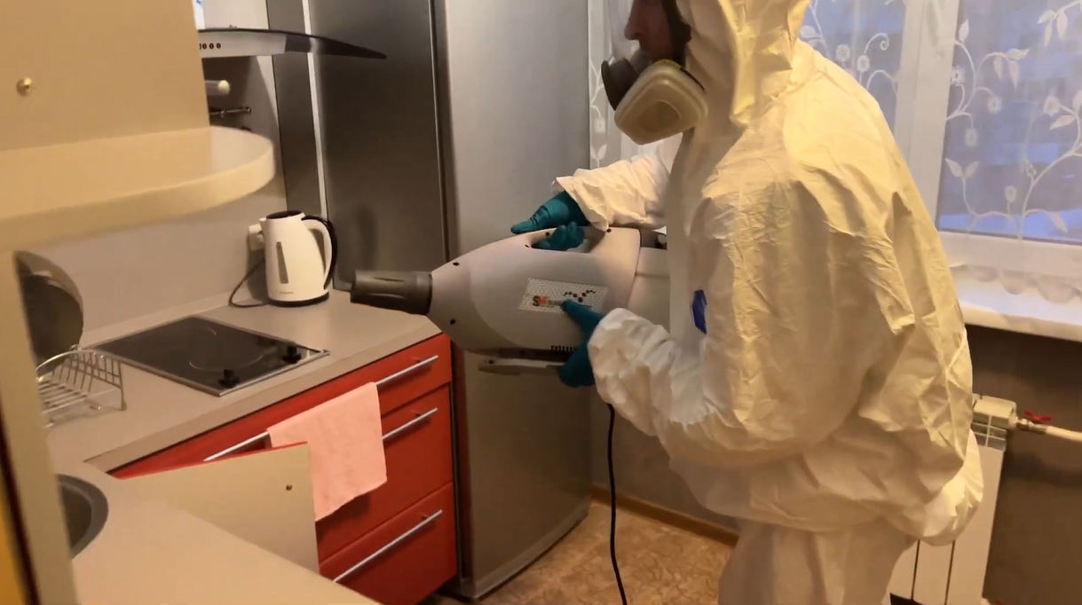 Это мера борьбы службы СЭС города с распространением возбудителей вирусов и инфекций. Процесс производится с помощью технологий горячего и холодного тумана. Химикаты конденсируются на поверхностях квартиры - это дает наилучший эффект для проникновения в труднодоступные места. На время проведения процедуры нужно ограничить в него доступ домашним животным.